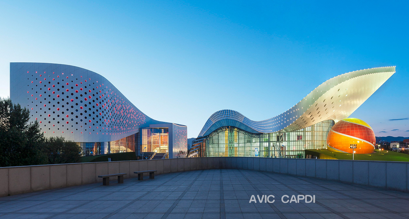 Características: el centro abarca 9 salas de ensayo( escena de 1200 asientos), teatro, sala de música, sala de instrumentos musicales, sala de manufacturación de accesorios, sala de vestuarios, sala de archivos, almacén, oficinas, sala de reunión y zona de servicio cotidiano,etc. Se inspira por los factores artísticas típicas de Mogolia interior, se da el sentido rómantico de la estepa plasmando las nubes blancas en el cielo azul y pastor verde.