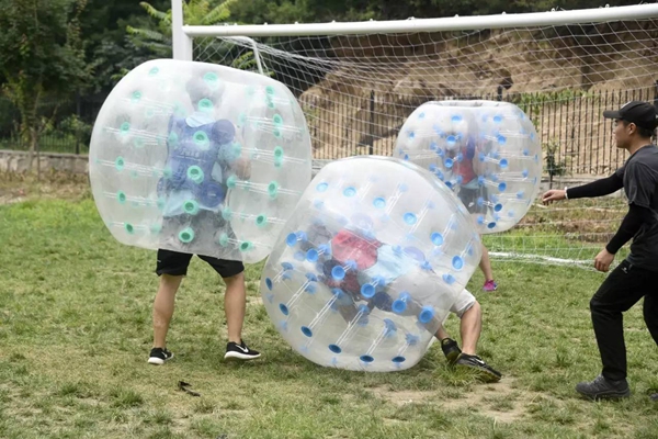 隊員們利用有限資源,根據杠桿原理,制作一個羅馬炮架,發送水彈攻擊對方隊員。